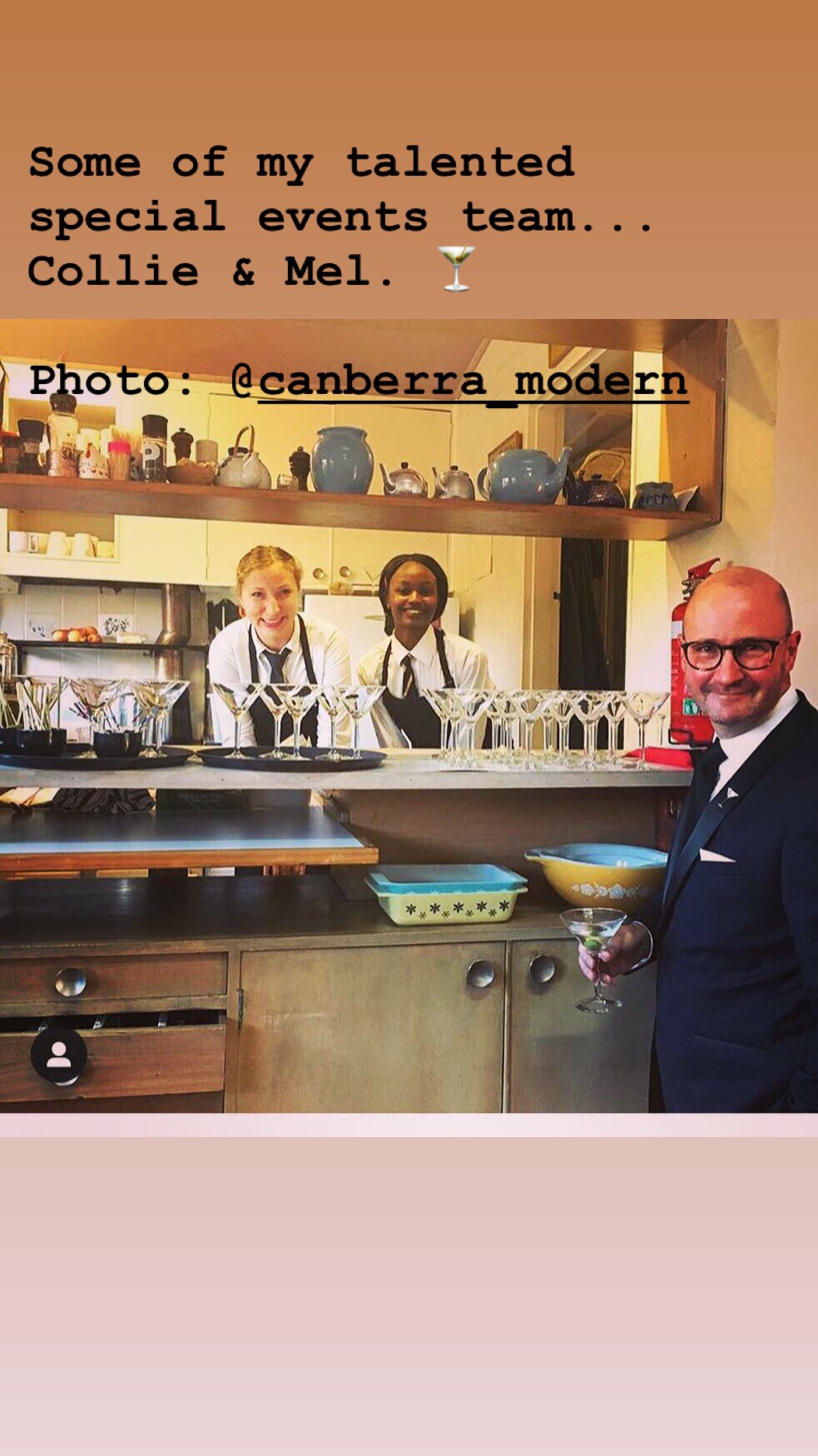- On the 3rd of May my team will be creating perfect Martinis at Manning Clark House in Canberra as part of this year’s Canberra Modern festival – SOLD OUT