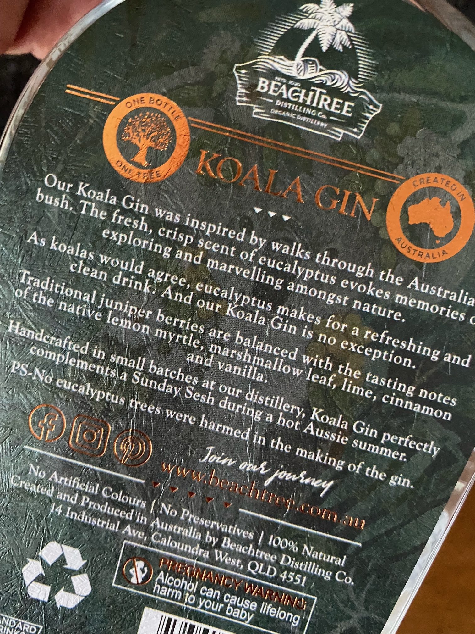 The Koala Gin is described as having good levels of flavour. On the palate, it has a lot of elements of the traditional classic profile, but with extra weight, sweetness and roundness. Traditional juniper berries are balanced with the tasting notes of lemon myrtle, cinnamon and vanilla.